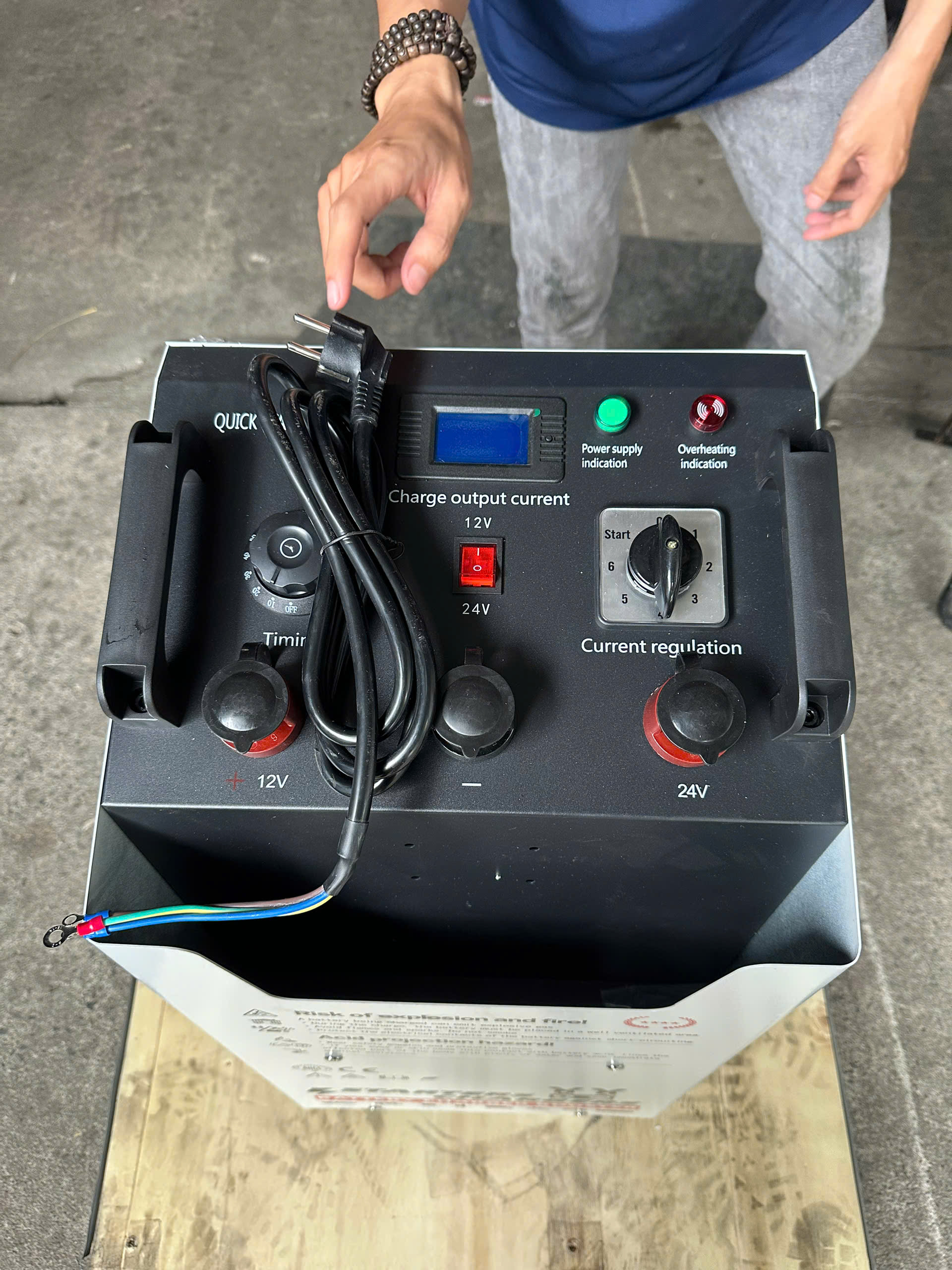 1. Máy sạc ác quy và khởi động nhanh F2500A:Máy sạc ác quy và khởi động nhanh F2500A là thiết bị sử dụng nguồn điện 1 pha (220 V), hỗ trợ cả ắc quy 12 V và 24 V. Trang bị dòng khởi động lên đến 1000 A và dòng sạc 60 A, giúp nạp đầy nhanh ắc quy, đồng thời có khả năng “cứu hộ” khởi động động cơ ô tô, xe tải khi ắc quy yếu.